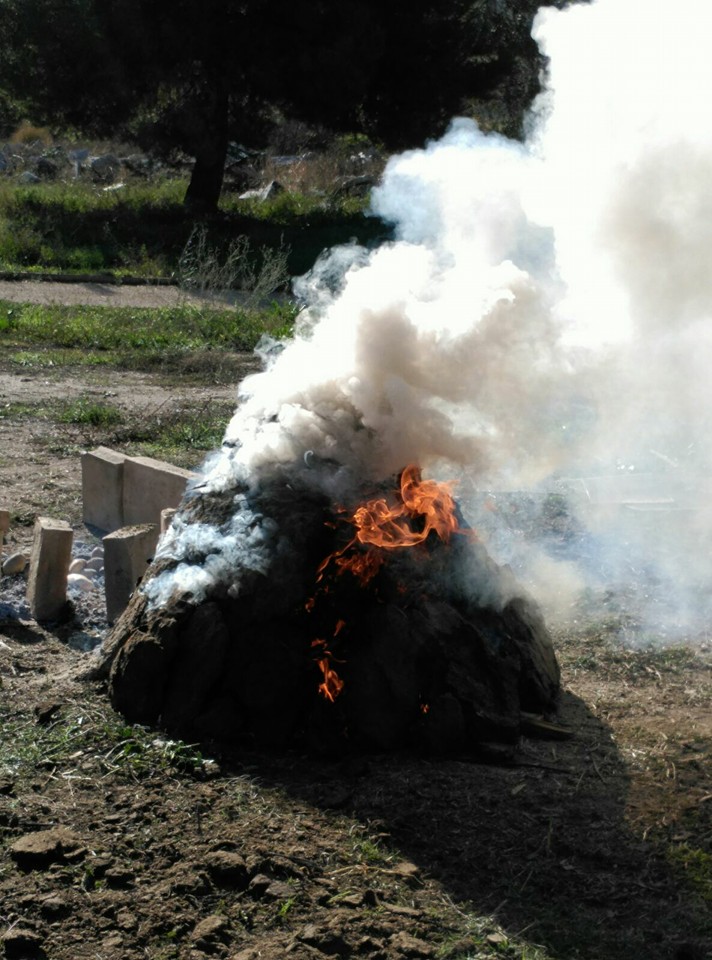 Uno de los lugares de cocción es un hoyo en el que se introducen las piezas y se rellena de pinosa o materiales combustible hasta la superficie, lo que permitirá un aumento local de la temperatura y la ausencia de oxígeno, que oscurecerá las piezas por la atmósfera reductora creada.
